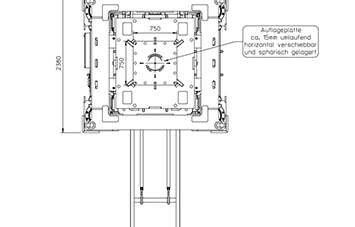 Redundant position sensors ensure that the system is raised/lowered evenly, and the square support plates (750mm) are equipped with a spherical central bearing for linear